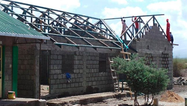 Classroom under construction and First classroom completed.