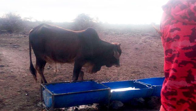 • Pump and 10.000 Litre water tank, 2 separate toilet blocks with 2 toilets in each, 2 persons to maintain and service each project.  32 cows and a bull + one cow with a bull calf – cow feed during 2017 draught. Directly to the village.